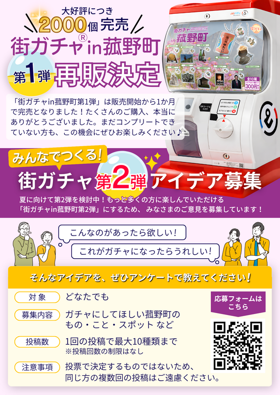 街ガチャin菰野町が再販!第2弾企画のアイデア募集も同時に開始!あなたのアイデアがガチャガチャに!
