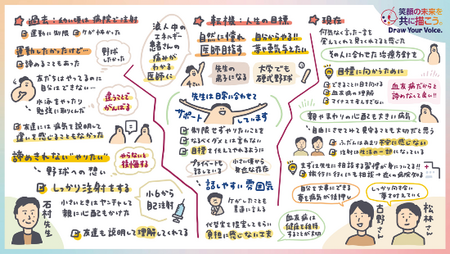 この度、「笑顔の未来を共に描こう。Draw Your Voice.」をコンセプトに、患者さん、ご家族、医師を招き、血友病と向き合う日常や診療における協働、将来の夢について語り合うグラフィックレコーディングを実施しました。参加者の声は、医師とのコミュニケーションを通じて患者さんが目標を実現していくプロセスとしてビジュアル化されており、完成したグラフィックおよび動画はこのたび公開されました。本活動は、患者と医療者が協働して意思決定を行うシェアード・ディシジョン・メイキング(SDM)の重要性を広く啓発することを目的としています。SDMとは、患者の視点を取り入れ、医療者の支援のもとでより良い選択に至る意思決定プロセスを指します。詳細はhttps://idenshi-chiryo.csl-info.com/sdm/overview/をご参照ください。