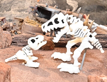 発売25年目の節目を記念し初めて企画された展覧会は、世界三大恐竜博物館の一つで、国内外から恐竜ファンが訪れる福井県立恐竜博物館を会場にしています。会場内には巨大なジオラマがセットされ、その中で、ほねほねザウルスたちが、さまざまなドラマを繰り広げています。発売当初の貴重な「ほねほね」をはじめ、歴代の数百体がずらりと並ぶ「進化の地層エリア」では、見るものを圧倒する壮観な眺めを楽しめます。