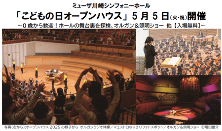 ミューザ川崎シンフォニーホール(川崎市幸区大宮町1310、以下「ミューザ」)は、2026年5月5日(火・祝)に「こどもの日オープンハウス」を開催、ホールを無料開放します。