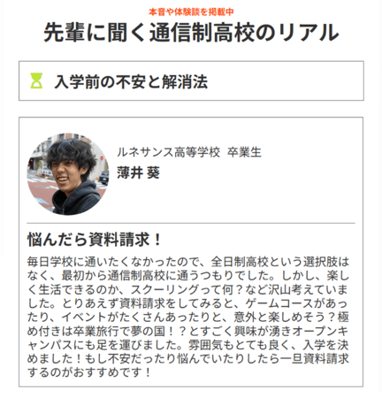 中高生が抱える入学前の不安を解消「先輩に聞く通信制高校のリアル」をリリース<プレマシード>: 画像一覧(5)