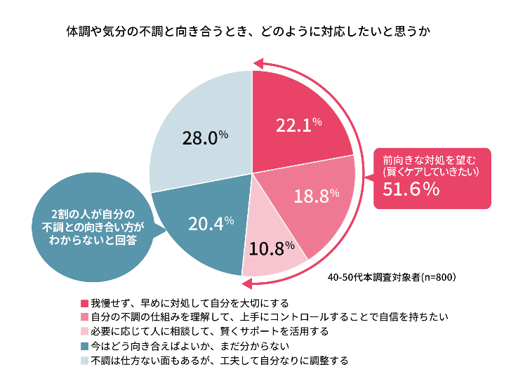 ● 51.6%の女性は「体調や気分の不調に前向きに対処したい」と回答
