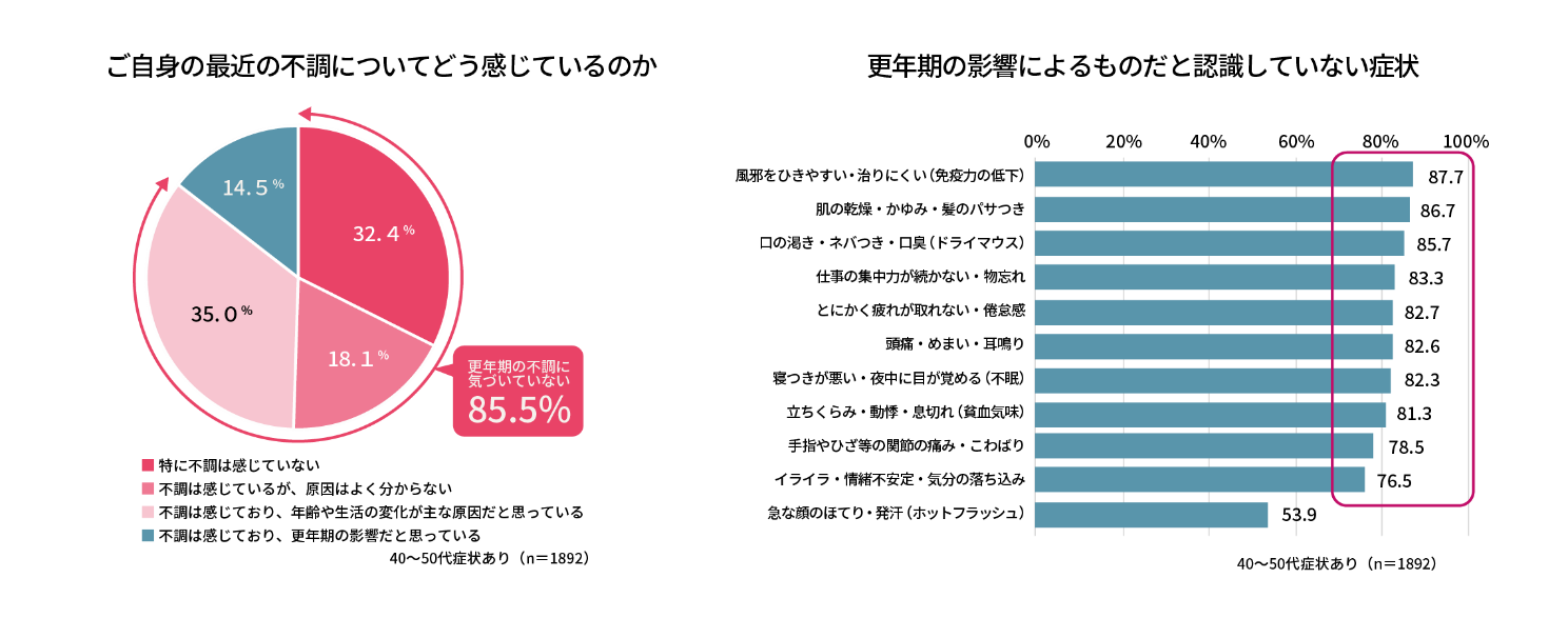 忙しさや「これくらい大丈夫」という思い込みによって見落としがちな身体の不調に対し、『隠れ更年期』かもしれないと自身の状態を見つめ直すことが、自らの不調への気づきにつながり、セルフケアへの第一歩につながることが示唆されます。