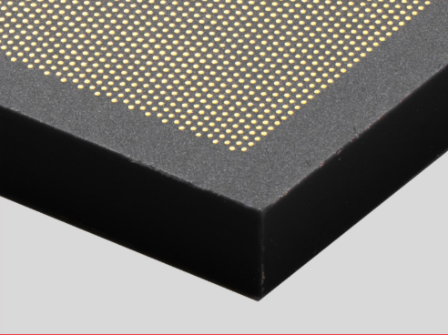 セラミック基板では、コア基板の表裏間を電気的に接続する厚み方向の導体をビアと呼んでいます。このビア形成は、セラミック材料を焼成して固くなる前のやわらかい状態で加工する製造プロセスで行われます。そのため有機コア基板のビア(スルーホール)加工プロセスで採用されているドリル加工などと比べ、微細加工性に優れていることから、従来の有機コア基板において高密度配線化に対する課題とされていたビアの小径化、狭ピッチ化が可能です。