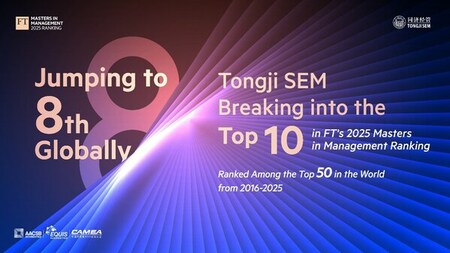 同済大学経済管理学院、フィナンシャル・タイムズ「2025年経営学修士ランキング」で世界第8位にランクイン
